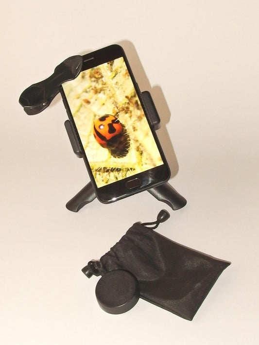 Mini Tripod with Ball Head, Phone Bracket and Clip-on Macro lens